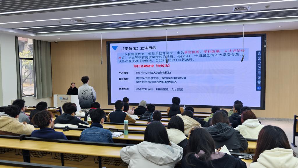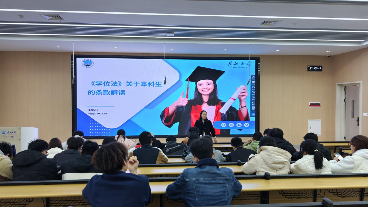 (通讯员 燕军)3月13日下午,太阳集团tyc33455cc在16教A110开展《中华人民共和国学位法》主题会议,围绕政策宣讲解读、班团干部职责解析及新生学业规划指导三大主题展开。会议由公司辅导员向云彬老师主持,太阳集团tyc33455cc全体员工参会。