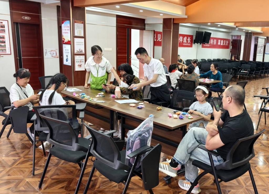 活动以“我的世界”黏土创意环节拉开序幕。在志愿者的引导下,祖孙家庭携手用五彩黏土创作童趣作品。现场可见胡萝卜、小兔子等造型在指尖逐渐成型,有的孩子还细心地为“小兔子”搭建了黏土小屋。