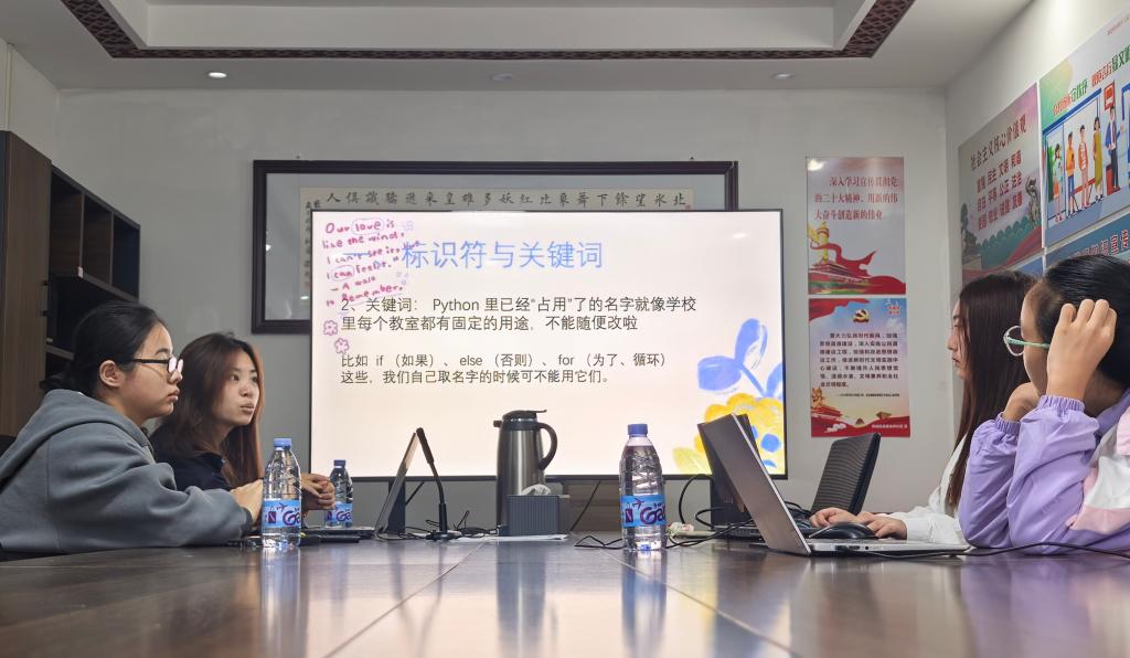 “给变量、函数起名字,就像给我们身边的事物贴标签,但有自己的规则。”在面向新年龄段员工的课堂上,志愿者从“标识符与关键字”入手,用生动的比喻,引导孩子们理解编程语言的基本语法。