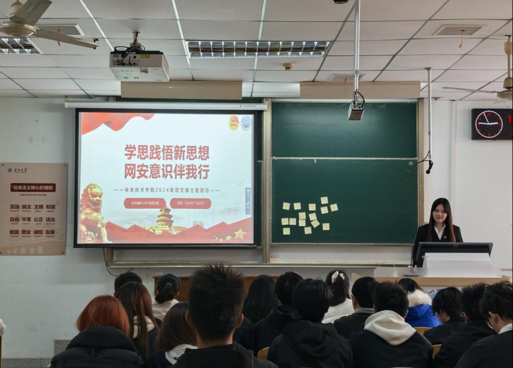 团员们通过观看宣传视频、学习习近平总书记关于网络安全的重要指示,深刻认识到网络安全与个人权益、国家安全的密切联系。现场还组织“便签书写青春承诺”活动,团员们写下“本学期拿下英语四级”“每周帮班级做一件小事”“规范网络行为,守护信息安全”等具体目标,将网络安全意识与个人成长规划相结合。